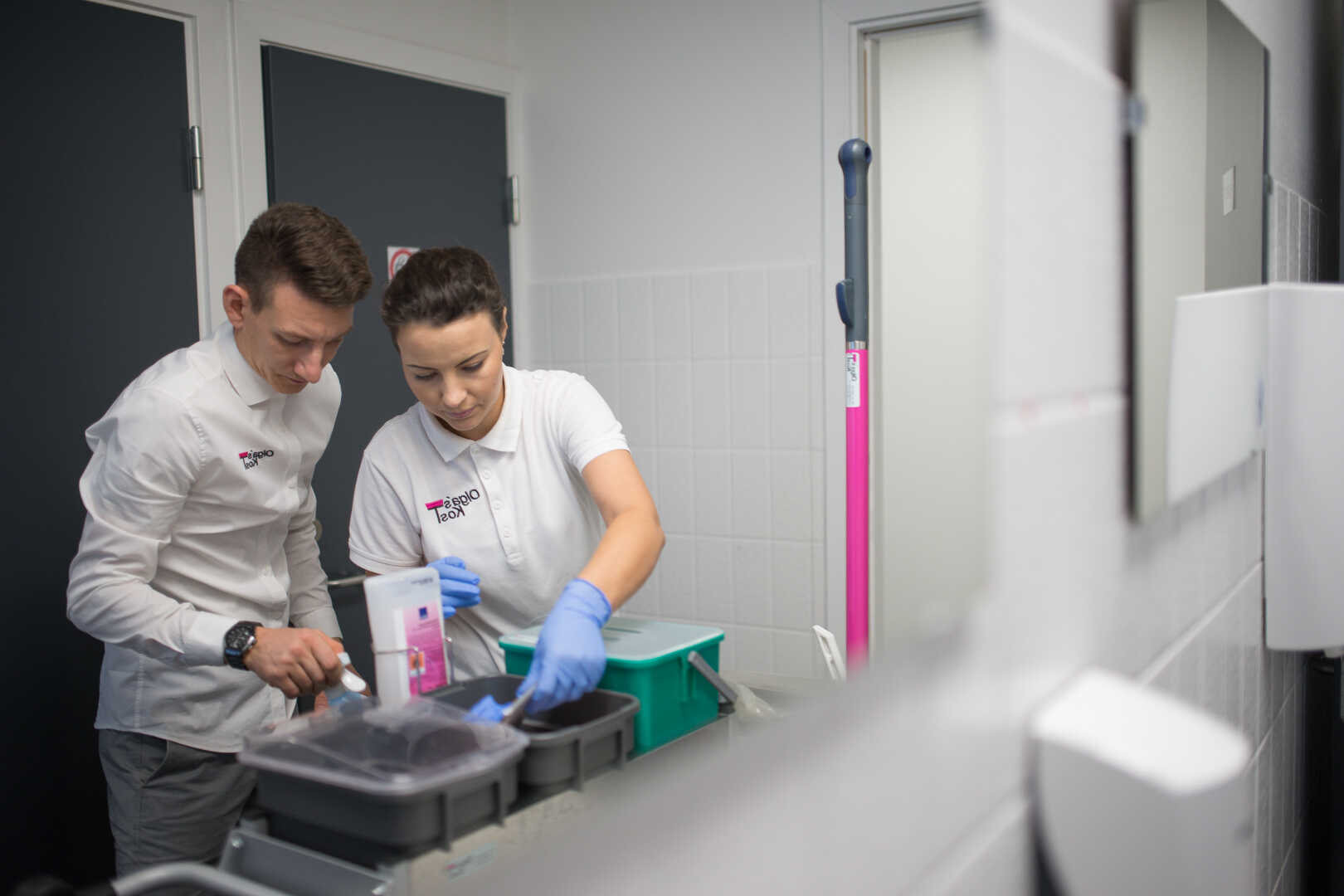 - Opfyldning af toiletpapir, håndklædeark, håndsæbe samt dispenserer